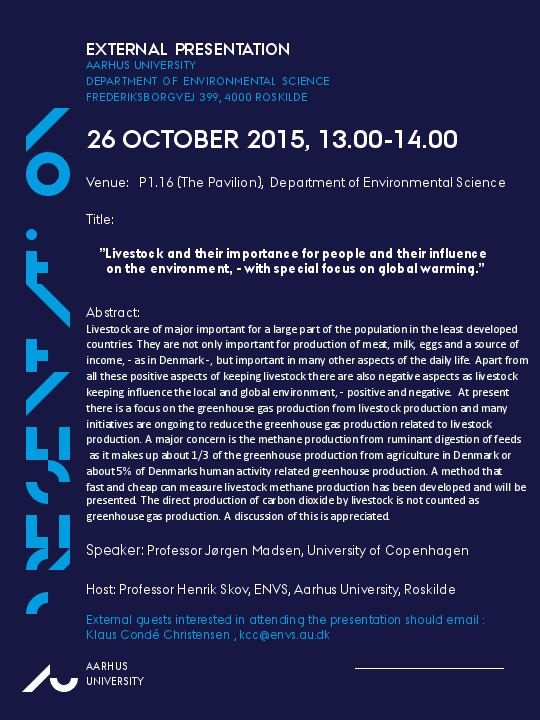 “Livestock and their importance for people and their influence on the environment, - with special focus on global warming”.